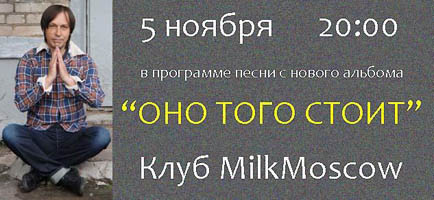 Радио "Добрые Песни" приглашает всех своих слушателей на концерт Николая Носкова, который состоится 5 ноября в московском клубе "Milk".